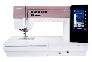 The Horizon Memory Craft 9410QC has a trendy pink copper front accent panel, this model is the lower version of the Horizon MC9480QCP though it does not have the accurate stitch regulator, it does have the same work area of 11″ | 280mm to the right of the needle. The large tilted high-def colour LCD touch screen makes it easy to navigate through the 300 built-in stitches, including 11 buttonholes and 7 fonts including 9mm lettering and numbers. You can customise each stitch including buttonholes plus save your custom stitch as a favourite stitch. Sewing Applications gives you a variety of pre-set stitch functions, ready to sew zips, blind hem, buttons, quilting, patchwork and lots more. Quilters and crafters will appreciate the AcuFeed™ Flex Layered Fabric Feeding System, the Automatic Presser Foot Lift and the Electronic Automatic Tension Control. The MC9410QC offers you extensive lighting with 9 bright white LED lights over 4 locations. To personalize your sewing, you can create your own stitches using the Stitch Composer Software supplied as a download.