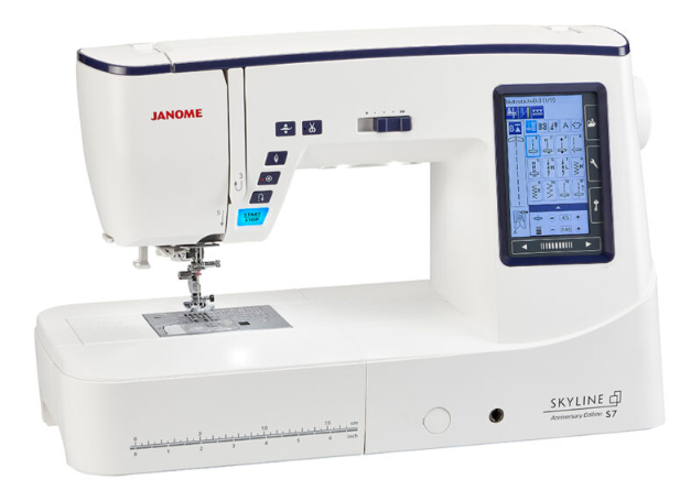 The Skyline S7AE is a great machine. Increased features make it very attractive, 350 built-in stitches, including 11 buttonholes and 3 fonts / 7 alphabets. Quilters and designers will enjoy the AcuFeed™ Flex Layered Fabric Feeding System and the automatic presser foot lift. Let’s get professional this model is compatible with the HP Professional Grade Needle Plate, HP Foot and HP2 AcuFeed Professional foot, all are available as an add-on purchase. The 11 buttonholes can be customised by stitch width, stitch density and buttonhole opening. The new style feed dogs have improved the fabric feeding capabilities. Forget the instruction book, let the machine set-up your selected technique using the Sewing Applications menu which now includes Stitch Tapering and Ruler Work Mode, plus added to the items supplied in the machine carton, is an extra wide table.